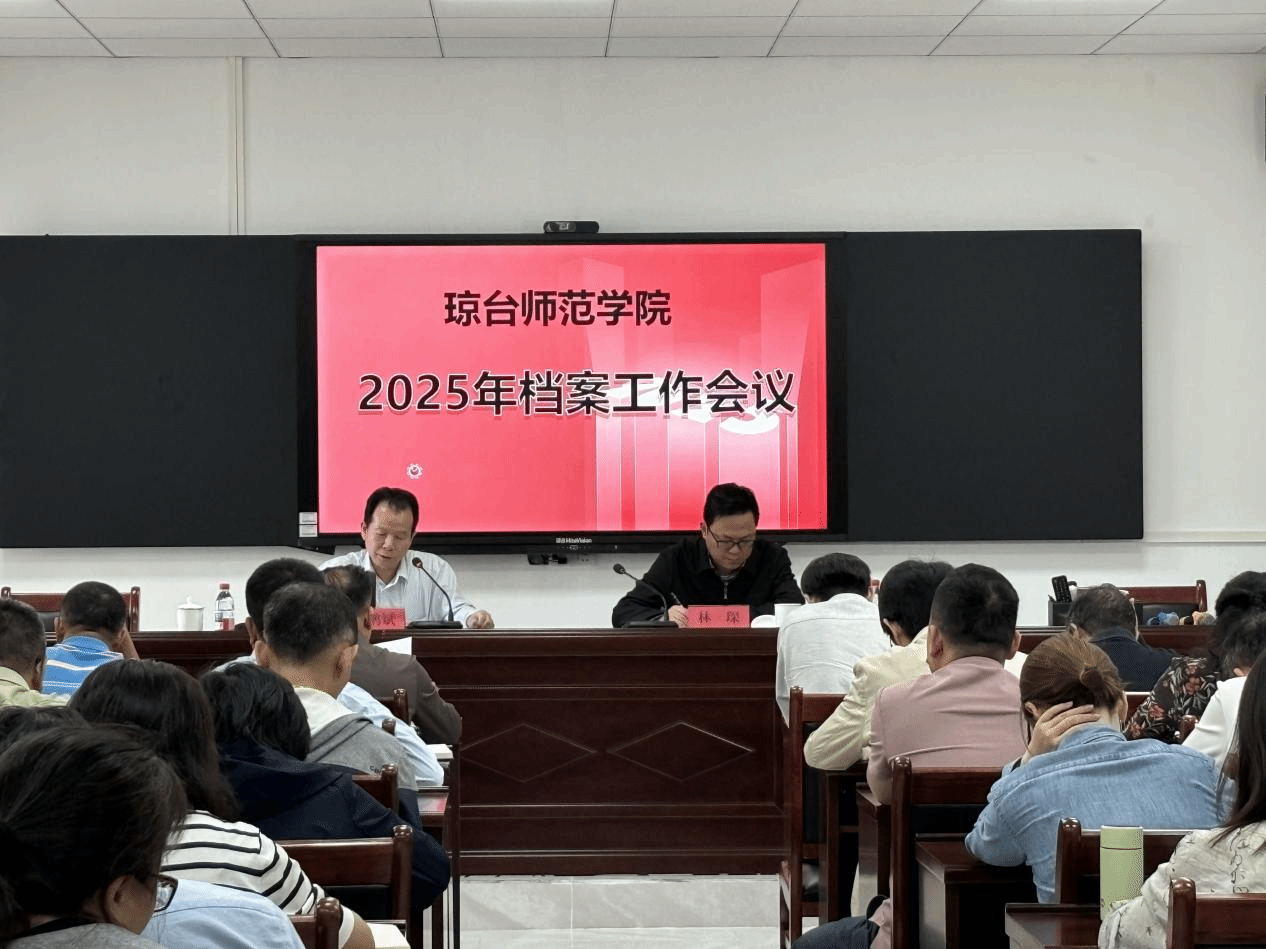 4月9日,琼台师范学院2025年档案工作会议在桂林洋校区敦行楼四楼会议室召开。学校党委委员、副校长林琛出席会议并讲话。学校各处室、教辅单位、各二级学院、附属幼儿园负责档案工作的部门领导及兼职档案管理人员等共80余人参加会议。会议由档案馆馆长王鹏斌主持。